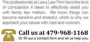 We understand that family issues can become stressful. Therefore, we approach these types of emotional issues with great care. We first seek to resolve the situation through negotiation and settlement. If this approach doesn't achieve the proper resolution, an experienced family law attorney will stand with you when the case goes to trial.