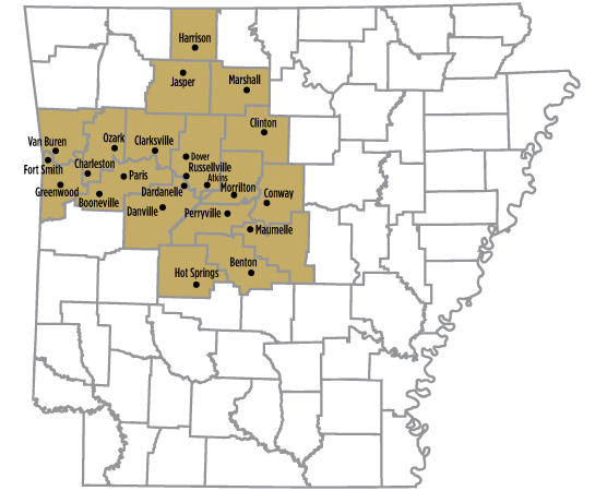 • Marshall • Maumelle • Morrilton • Ozark • Paris |